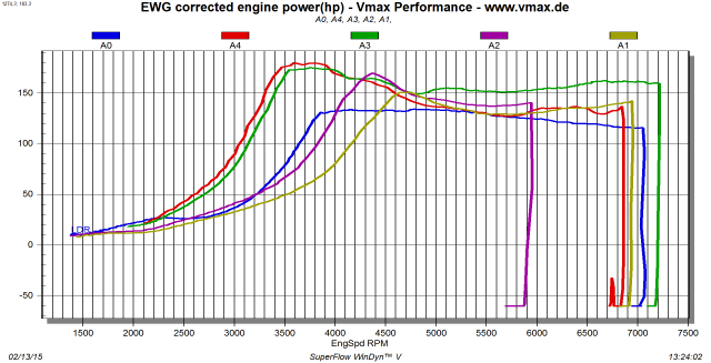 Dennoch war das Ansprechverhalten verglichen zu anderen Fahrzeugen die ich mit dem selben Lader kannte noch meiner Meinung sehr bescheiden. Es wurde also weiter gesucht und es mußten die neuen Nockenwellen und das Saugrohr weichen gegen die alten. Das Ergebnis verbesserte sich nocheinmal und dies doch sehr entscheident.