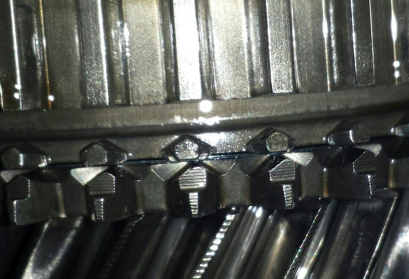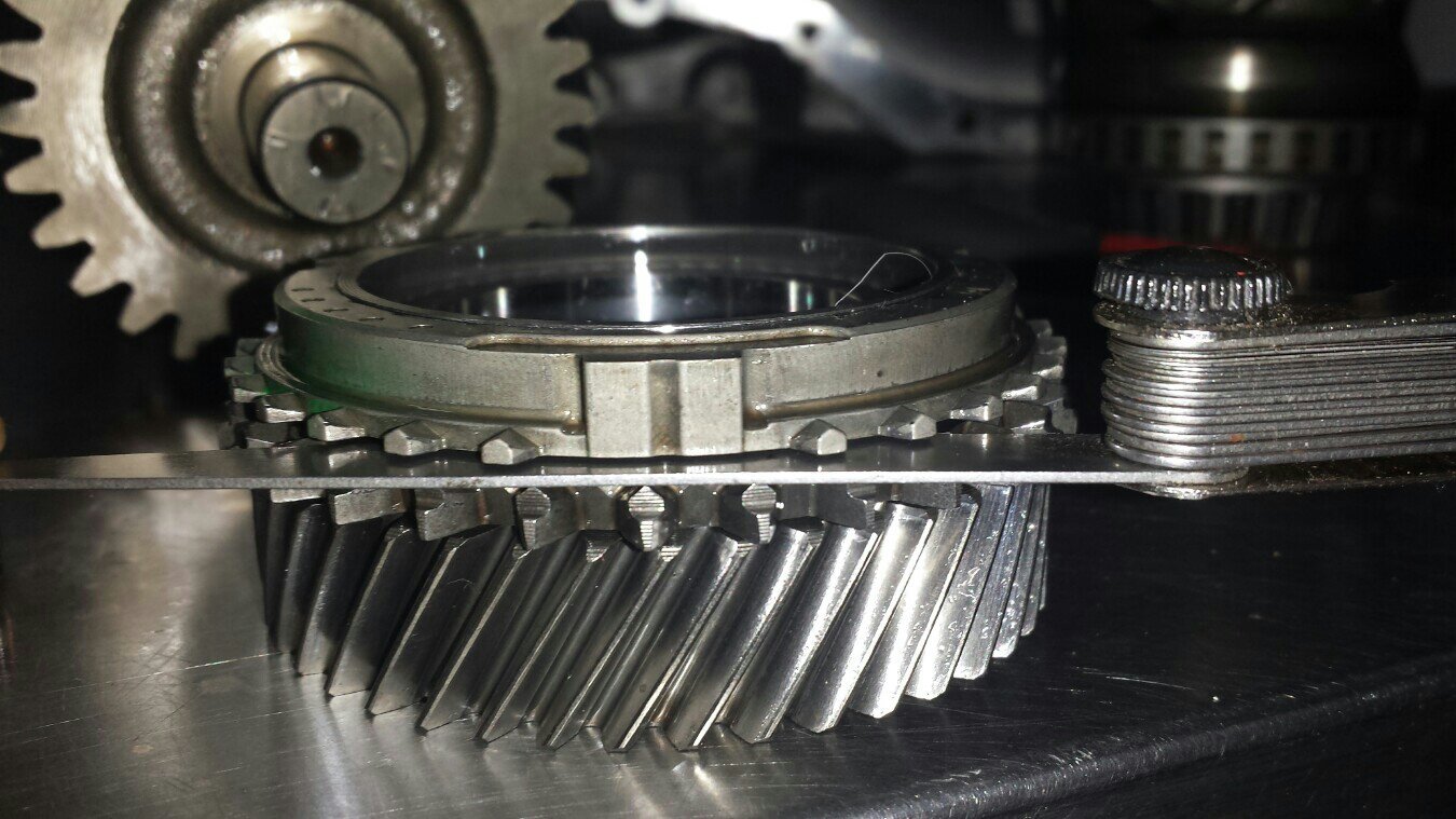 Synchronring 3 absolut fertig. Kein messbarer spalt. Keine kraftuebertragung mehr moeglich. Zaehne der schiebemuffe und synchronring asymetrisch abgenutz.