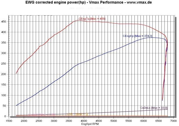 Ladedruck im Overboost 1.5bar abfallend auf ~1.3bar @ 6000rpm und ~1.15bar @ 6700rpm .